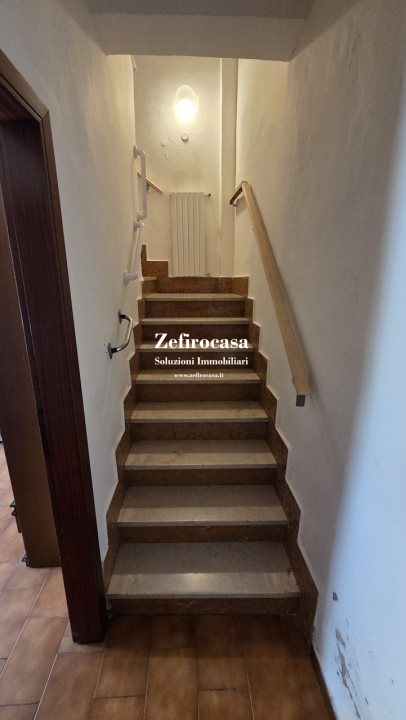 Attualmente l'immobile è composto al PIANO TERRENO da  autorimessa collegata ad un bagno/lavanderia, atrio di ingresso, soggiorno/cucina, un bagno e vano scala, al PIANO PRIMO da 4 stanze, altro soggiorno, 2 bagni .