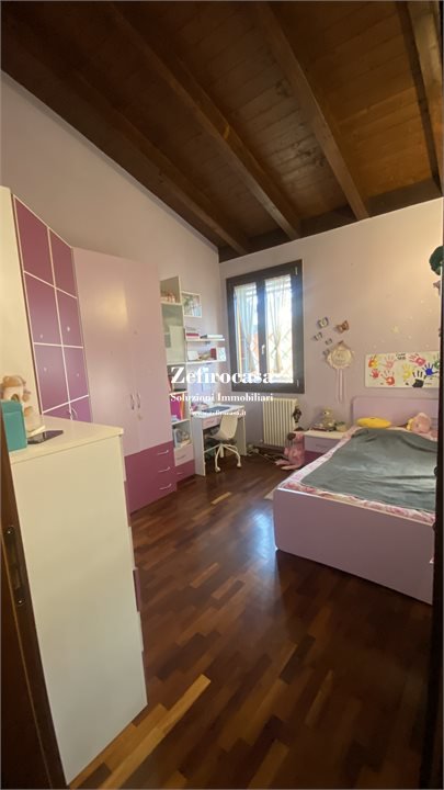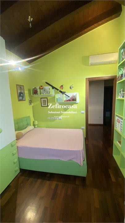 Al primo piano si apre un funzionale disimpegno che distribuisce tre ampie camere da letto e un secondo bagno, anch'esso di comoda metratura. Il tetto in legno a vista dona calore agli ambienti e un'atmosfera accogliente e raffinata.